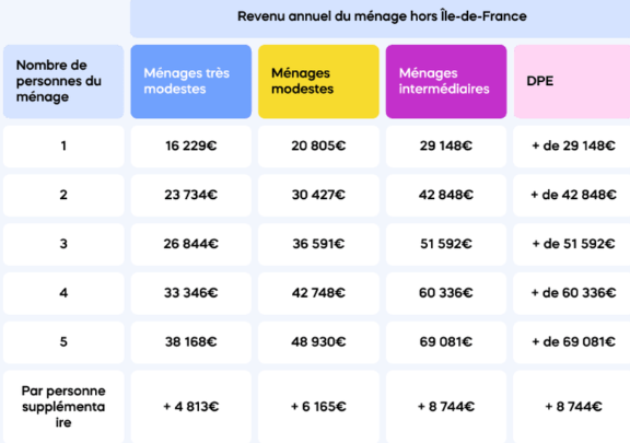 Afin de déterminer à quelle catégorie appartient un ménage, plusieurs niveaux de revenus sont définis : très modestes, modestes, intermédiaires et élevés. Ces catégories permettent d’identifier le montant des aides disponibles.